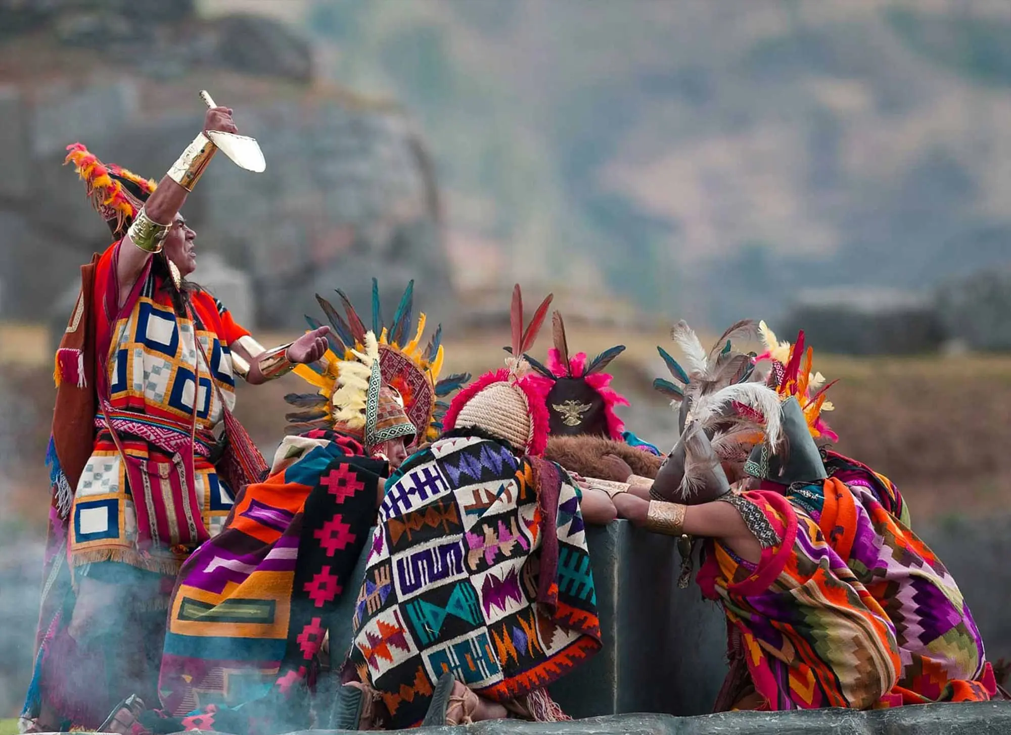 Ce n'est pas un simple spectacle où l'on s'assoit une heure. C'est une épopée qui commence le matin au Qoricancha (Temple du Soleil) dans le centre-ville, se déplace vers la Place d'Armes, et se termine par le grand final à la forteresse de Sacsayhuamán. Vous aurez une place réservée dans les tribunes (souvent la tribune Orange ou Rouge pour la meilleure vue), mais attendez-vous à passer 7 à 8 heures dehors. Votre guide gère toute la logistique complexe des déplacements entre ces points, au milieu d'une foule immense.